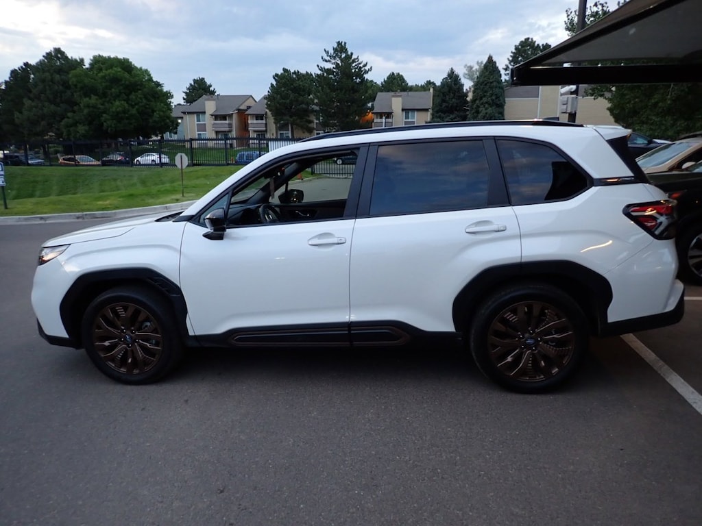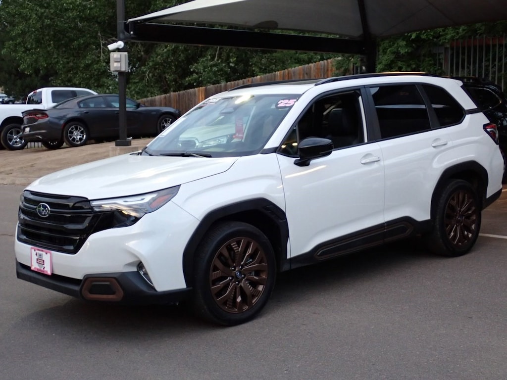 Contact AutoNation Subaru Arapahoe today for information on dozens of vehicles like this 2025 Subaru Forester Sport. This Subaru includes: POPULAR PACKAGE Auto-Dimming Rearview Mirror Universal Garage Door Opener CRYSTAL WHITE PEARL GRAY, SPORT STARTEX UPHOLSTERY Premium Synthetic Seats *Note - For third party subscriptions or services, please contact the dealer for more information.* The best part about this well-maintained vehicle is that it is a CARFAX one-owner vehicle. If you're in the market for an incredible SUV -- and value on-the-road comfort and manners more than ultimate off-road prowess or tow capacity -- you'll definitely want to check out this Subaru Forester Sport. If you are looking for a vehicle with great styling, options and incredible fuel economy, look no further than this quality automobile. You'll love the feel of AWD in this 2025 Subaru Forester. It provides a perfect balance of handling power and control in virtually every driving condition. With past service records included, feel comfortable knowing that the history of this Subaru Forester Sport is provided in order for you to make a knowledgeable decision. Looking for a Subaru Forester that is in great condition inside and out? Take a look at this beauty. The perfect balance of speed and control has been injected into this 2025SubaruForesterSport. Treat yourself to a Subaru Forester Sport that's got it all. Nearly every option is packed into this beautiful ride. Added comfort with contemporary style is the leather interior to heighten the quality and craftsmanship for the Subaru Forester Sport. Collapse Expand Pause Play Collapse Expand Pause Play