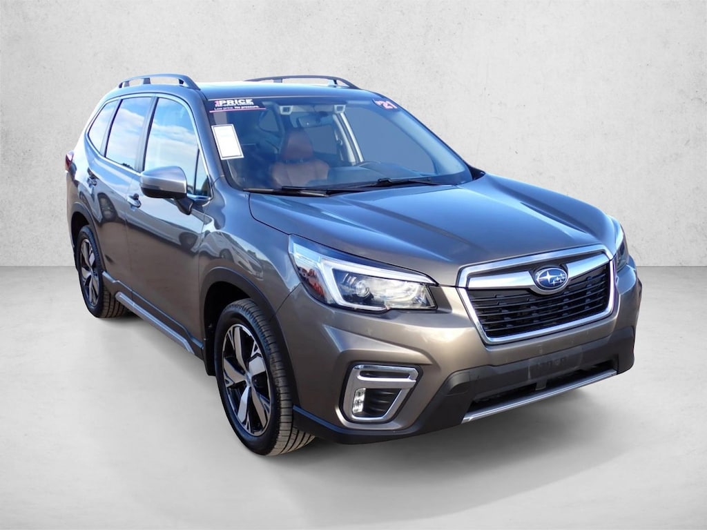 Check out this pre-owned 2021 Subaru Forester we recently got in. Enjoy an extra level of calm when purchasing this Subaru Forester Touring, it's a CARFAX One-Owner. The CARFAX report shows everything you need to know to confidently make your pre-owned purchase. Perfect for the on-the-go family, this Subaru Forester Touring is an SUV everyone will love. With exceptional mileage, options and power, you'll insist on driving it on all your outings. You could spend more on fuel each month than on your vehicle payments, so why not consider one with exceptional fuel economy like this 2021 Subaru Forester. Enhanced performance, a refined interior and exceptional fuel economy are just a few of the things you'll enjoy about this all-wheel drive vehicle. Service records are included with the purchase of this well-maintained pre-owned vehicle. Clean interior? How about flawless. This Subaru Forester looks like has never been used. Some vehicles are more of a need-to-have. This one is a absolutely-must-have. If it's looks aren't enough to persuade you, the feel of the powerhouse under the hood most definitely will. This Subaru Forester Touring comes standard with features that are essential in the 21st Century. However, Subaru decided to take it one step further and add a handful of quintessential options that will undoubtedly add to this vehicle's quality and value. Added comfort with contemporary style is the leather interior to heighten the quality and craftsmanship for the Subaru Forester Touring. This Subaru Forester offers the most up-to-date navigation system available so you'll always know the most efficient route to where you are going.